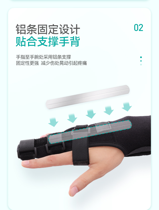 1、鋁條固定設(shè)計(jì),貼合支撐手背,固定性更強(qiáng)