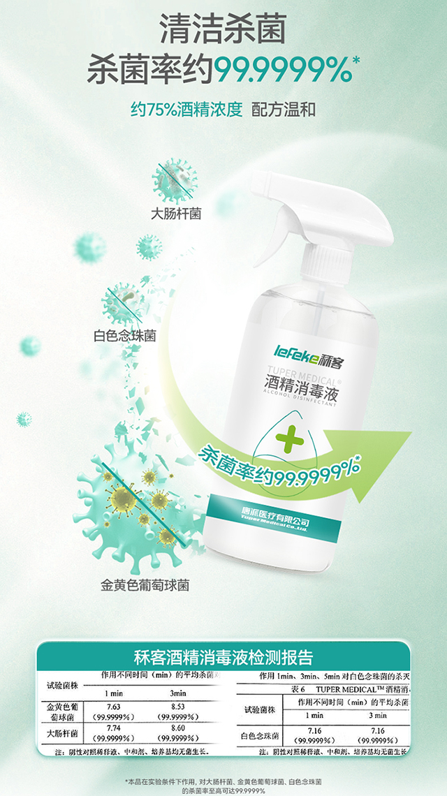 檢測報告證明殺菌率高,可殺滅大腸桿菌、白色念珠菌、金黃色葡萄球菌等多種細(xì)菌