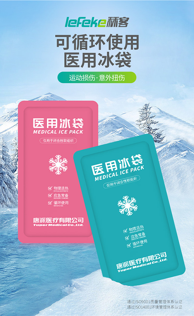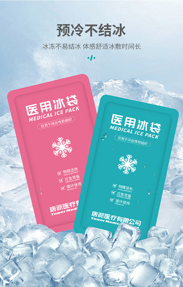 醫(yī)醫(yī)用冰袋是一種新穎冷凍介質(zhì),其解凍融化時沒有水質(zhì)污染,可反復(fù)使用,用于醫(yī)療高燒降溫退