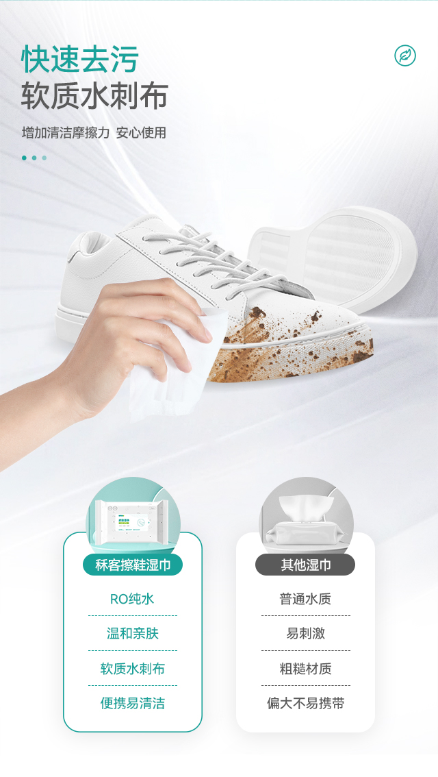 秝客免水洗擦鞋濕巾,復(fù)配多種去污成分,輕松瓦解污漬;溫和配方,親膚不易傷手