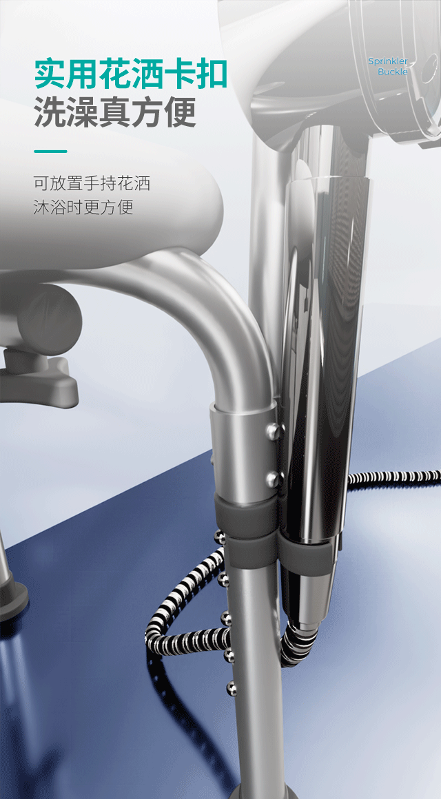 3、配置實(shí)用花灑卡扣,洗澡更方便