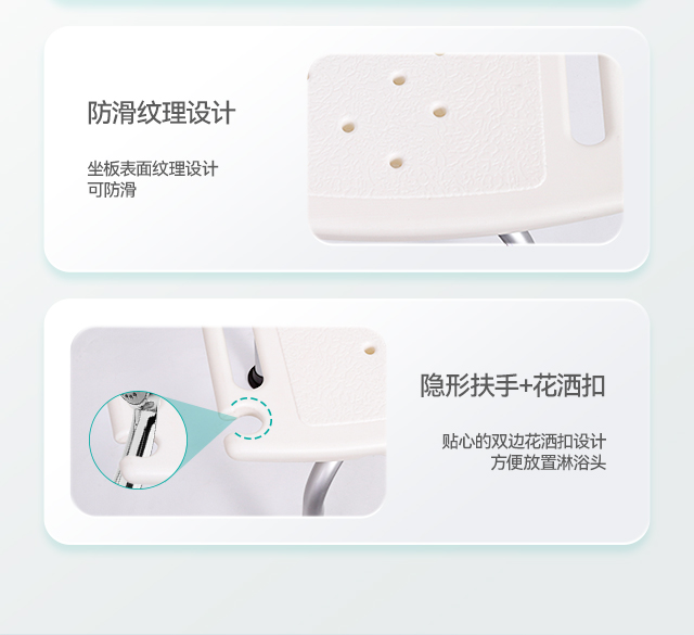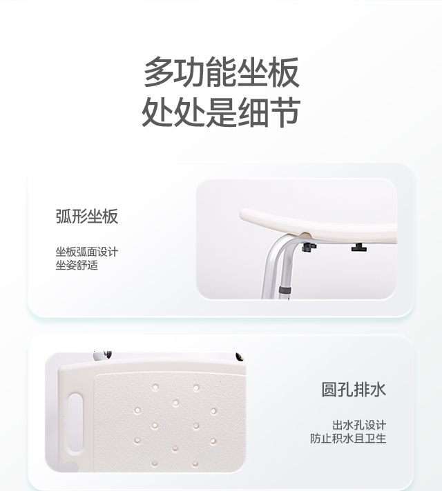 秝客站立架(洗澡凳),醫(yī)療器械備案,使用更安心;弧形坐板,圓孔排水,防滑紋理設(shè)計(jì),適用于居家老人、孕婦、骨折術(shù)后人群等行動(dòng)不便人群