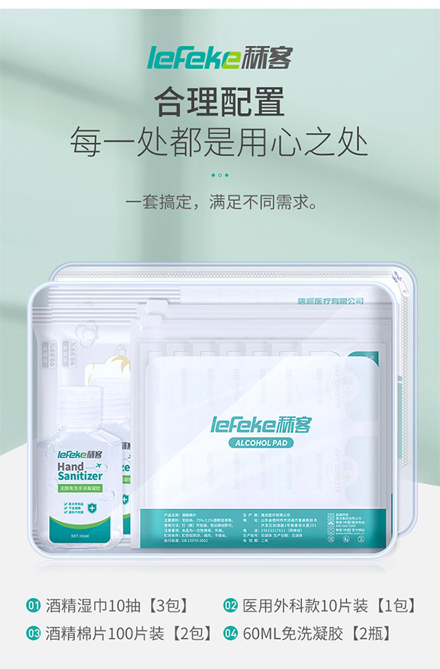 秝客健康大禮包(兒童款),包含酒精濕巾、酒精棉片、免洗凝膠、兒童口罩。合理配置,滿足不同需求。 產(chǎn)品細節(jié)優(yōu)勢: 1、合理配置,滿足不同需求 2、酒精濕巾、酒精消毒液 檢測報告證明殺菌率99.9999%*